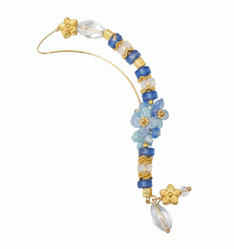 星降る夜の青。ロイヤルブルーと金色の小花が彩るノーブル・イヤーカフフック 201019-0058