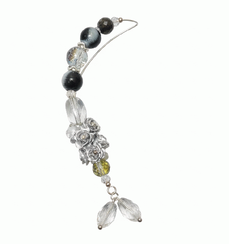 月夜の銀花。モノトーンビーズとシルバーローズが煌めく大ぶりイヤーカフフック 201019-0059