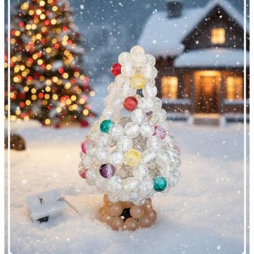 【限定1点】白 クリスマスツリー(LEDライト付き)ガラスビーズ