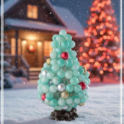 【限定1点】薄い緑 クリスマスツリー(LEDライト付き)ガラスビーズ
