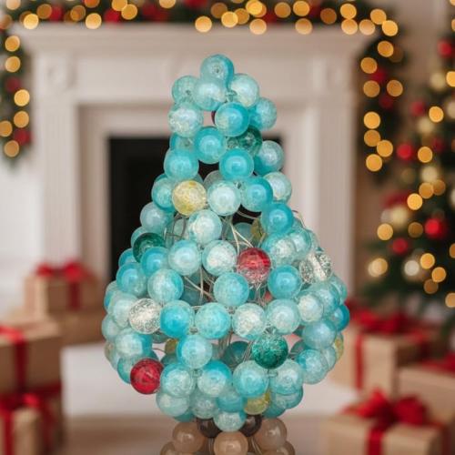 【限定1点】黄緑 クリスマスツリー(LEDライト付き)ガラスビーズ