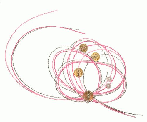 ■色合いとデザイン「ピンク」と、上品な輝きの「薄い緑」を組み合わせ、お祝いの席にふさわしいおめでたい配色に仕上げました。パッと目を引く色彩でありながら、水引特有の繊細な曲線が頭のラインに寄り添い、上品な横顔を演出します。