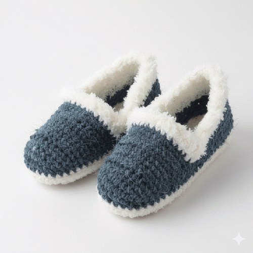 【冷え性対策】ふわもこ足首と布編みのルームシューズ20260107-6