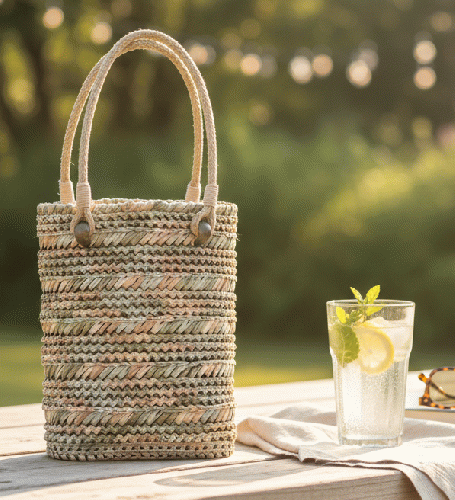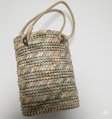 【デザインのポイント】 手編みならではの温もりと、自然素材が持つ豊かな表情が魅力です。カジュアルすぎず、上品さも感じさせるデザインで、普段使いからリゾートシーンまで幅広く活躍します。 持ち手は手に馴染みやすい柔らかな編み込みで、長時間の使用でも快適です。