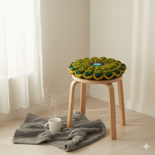 ふんわり極厚の座り心地: 2枚合わせ(または厚みのある編み地)で仕上げているため、しっかりとしたボリュームがあります。フローリングの上での直座りや、硬めの椅子に置いてもお尻が痛くなりにくい、優しいクッション性が自慢です。