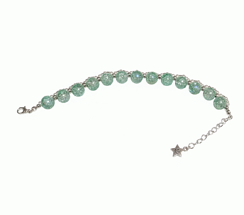 北欧の湖畔をそよぐ風のような、爽やかなミントグリーンで仕上げたブレスレットです。 クラック加工が施された透明感のあるミントグリーンのビーズと、上品な輝きのシルバーパーツを交互に配し、洗練された大人の涼やかさを表現しました。