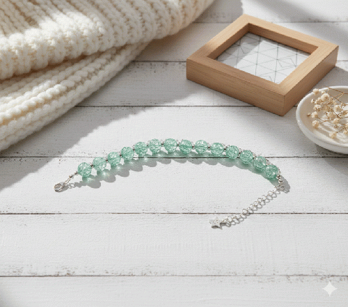 ミントグリーンとシルバーの煌めきブレスレット 20260115-2