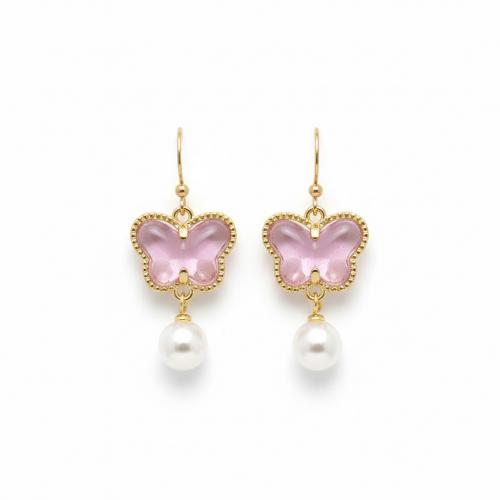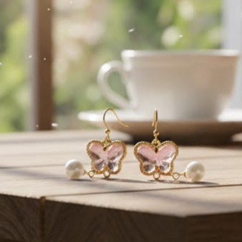 桜色のバタフライと揺れるパールの耳飾り|ピンク・春色・蝶・アンティーク風 20260216-11
