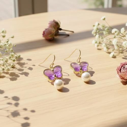 幻想的なパープルとブルーのグラデーションが美しい、バタフライモチーフの耳飾り 20260216-13