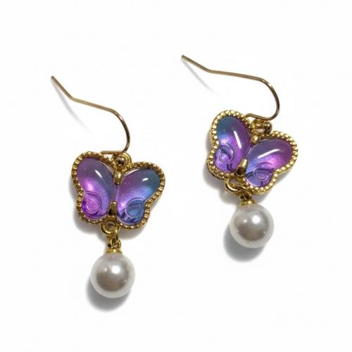 幻想的なパープルとブルーのグラデーションが美しい、バタフライモチーフの耳飾りです。