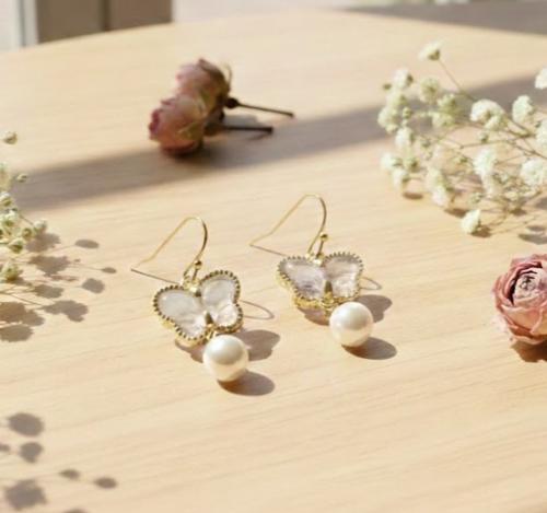 清楚な白のバタフライと艶めくパールの耳飾り 20260216-14