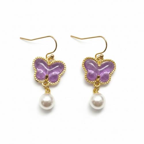 春を運ぶ 揺れる紫の蝶とパールのピアス/イヤリング|透明感 ラベンダー 20260216-17