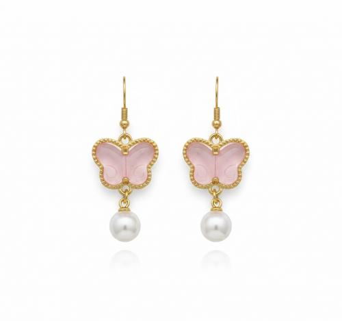 春の訪れを告げる桜のような、優しいベビーピンクの蝶が主役のピアスです。