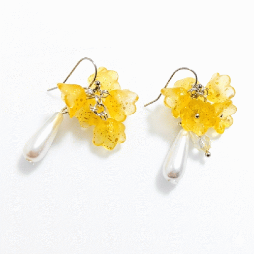 温かみのあるイエローの小花を束ねた、北欧テイスト漂う大人可愛いピアスの登場です。