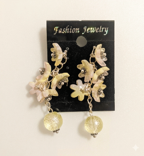 20260417-01花びら揺れる シェル風 フラワーピアス ニュアンスカラー 大ぶり ロング 樹脂