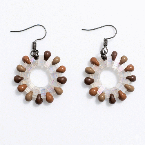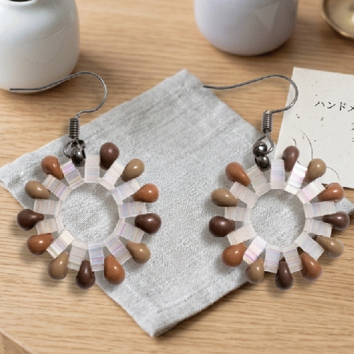20260417-02北欧風 ほっこり ドロップビーズ リースピアス ブラウン オーロラ サークル