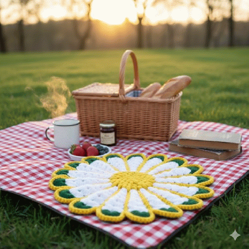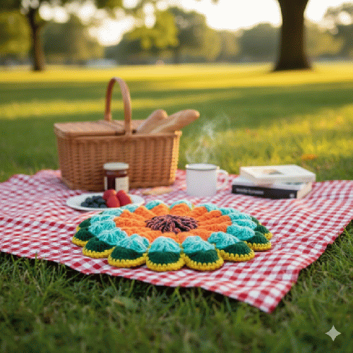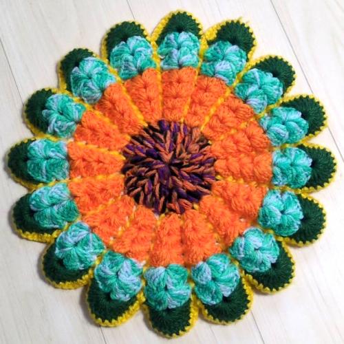 一針一針、心を込めて丁寧に編み上げた、大輪のお花が咲いたようなハンドメイドの座布団(円座)です。
