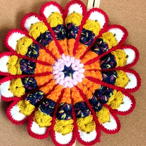マルチカラー 手編みニット座布団 0008