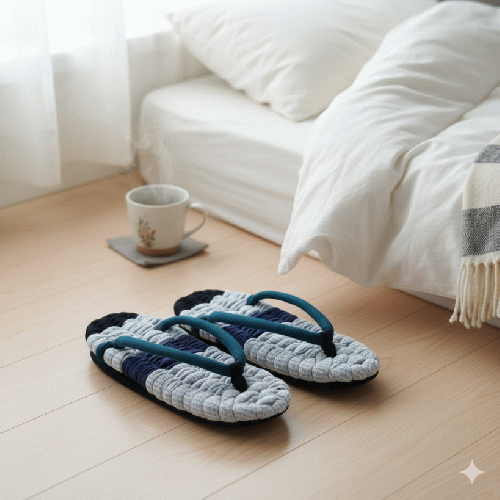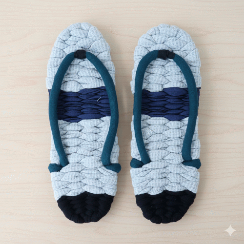 足元から整う心地よさ。爽やかな藍とグレーの布ぞうり(ワッフル&天竺ニット) Z0002