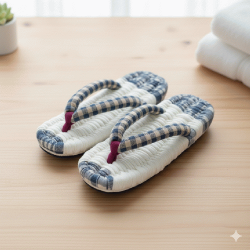 爽やかチェックの北欧風布ぞうり|素足に心地よいワッフル&コットン素材 Z0005