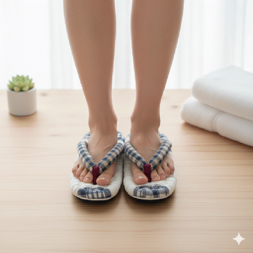 ■素材のこだわり 肌に触れる部分はさらりとした質感にこだわり、汗ばむ季節も蒸れずに快適です。しっかりと厚みのある編み地が、お風呂上がりの足を優しく包み込みます。