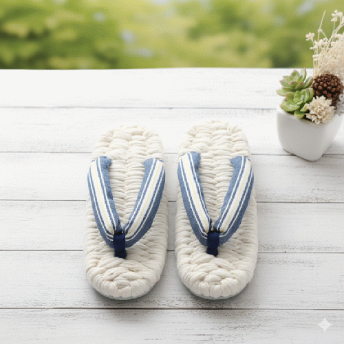 これからの季節にぴったりな、清涼感あふれるマリンブルー×ホワイトボーダーの布ぞうりです。