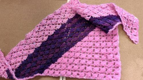 マルチカラー 手編み ピンク ストール