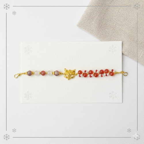 狐面と朱色パールの和モダンブレスレット 201019-0021