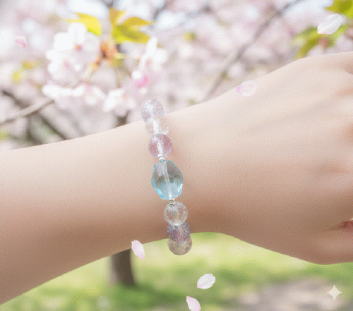 マルチカラーブレスレット 透明ピンク&水色 0022